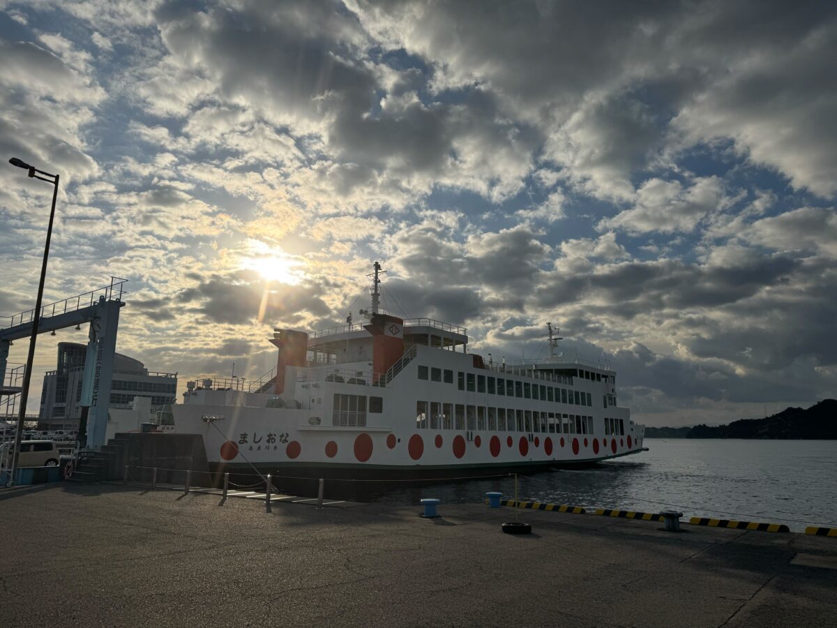 直島へ向けてフェリーに乗船!フェリー乗ることが初めての学生もおり、