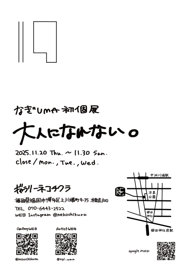 【卒業生個展情報】なぎUMA「大人になれない。」